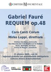 Requiem di Fauré eseguito dal coro polifonico Canti Corum affiancato da un baritono solista, da due “voci bianche” del Coro Montessori di Bollate e da un giovane violoncellista.