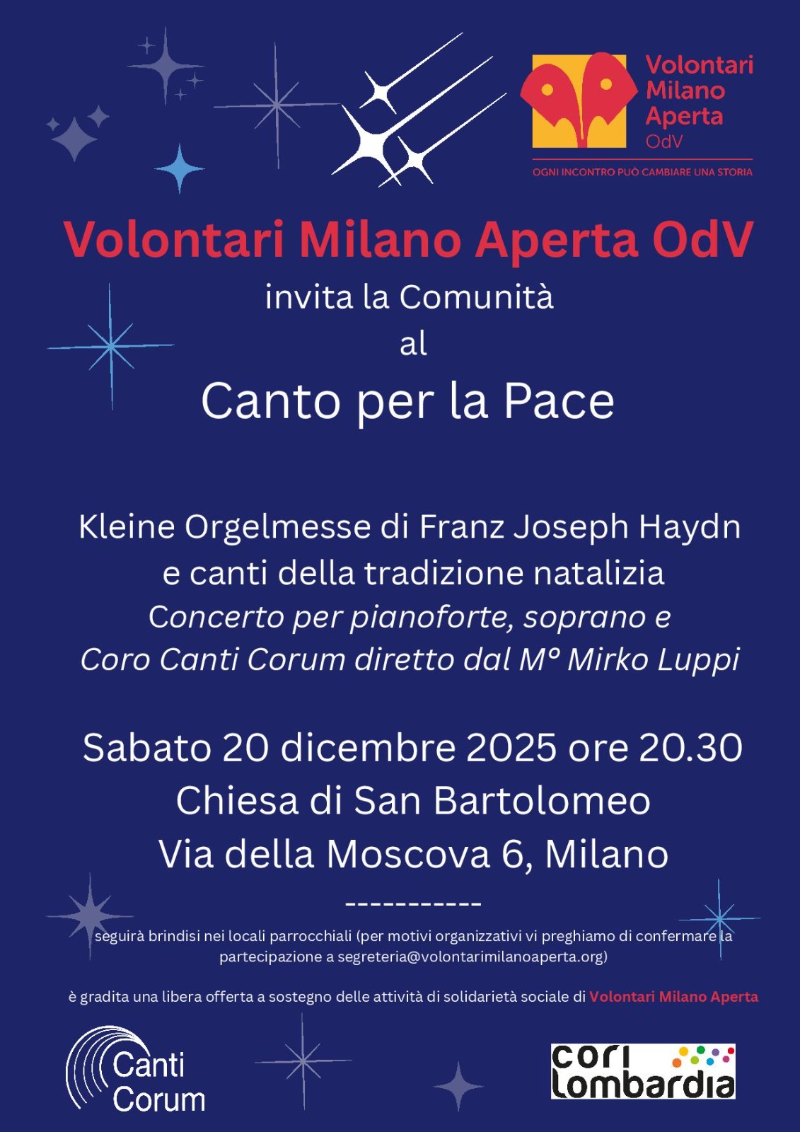 "Kleine Orgelmesse" di Franz Joseph Haydn. Canti di pace e della tradizione natalizia. Volontari di Milano Aperta OdV invita la Comunità al Canto per la Pace...